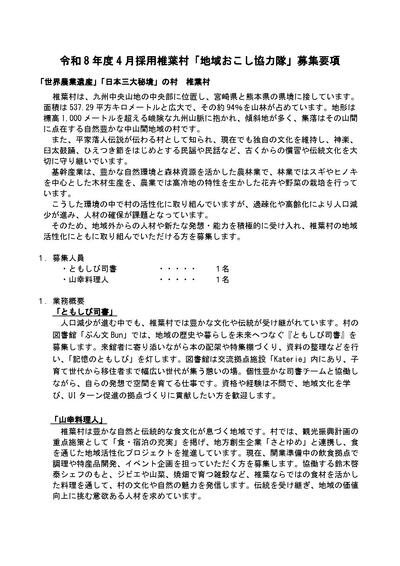 【令和8年1月30日〆切】令和8年4月採用 椎葉村地域おこし協力隊募集について - 地域振興課