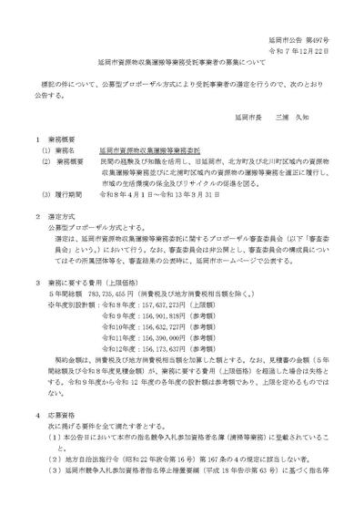 延岡市資源物収集運搬等業務委託に係るプロポーザル参加事業者の公募について