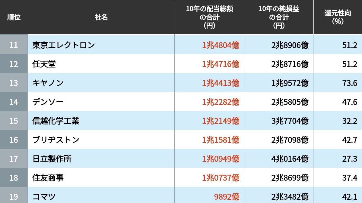過去10年累計「配当総額」ランキングTOP300 | 企業ランキング | 東洋経済オンライン
