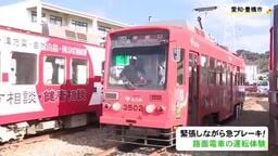 20トンある車両との綱引きも…路面電車の運転を楽しめるイベント 子供達が約50m走行させ決められた場所で停車