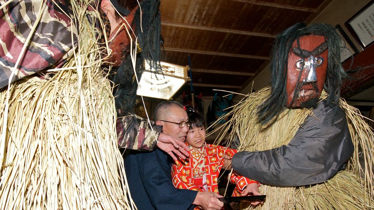 熊本・かもめ幼稚園で豆まき 4色の鬼と福の神も登場
